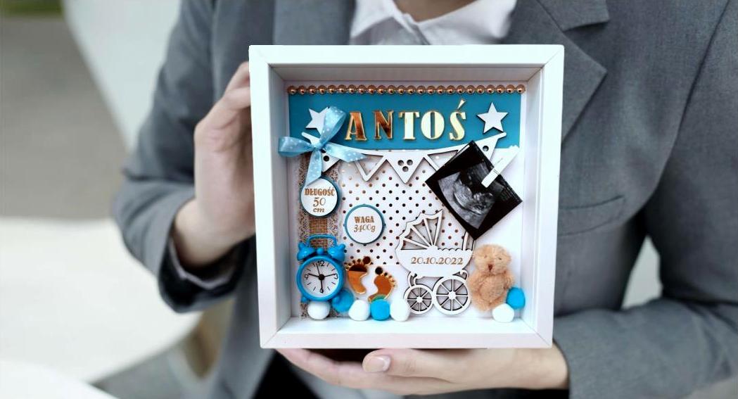 Именное, изготовленное вручную свидетельство о рождении мальчика в виде 3D рамки, размером 25х25 см со стеклянным окошком.