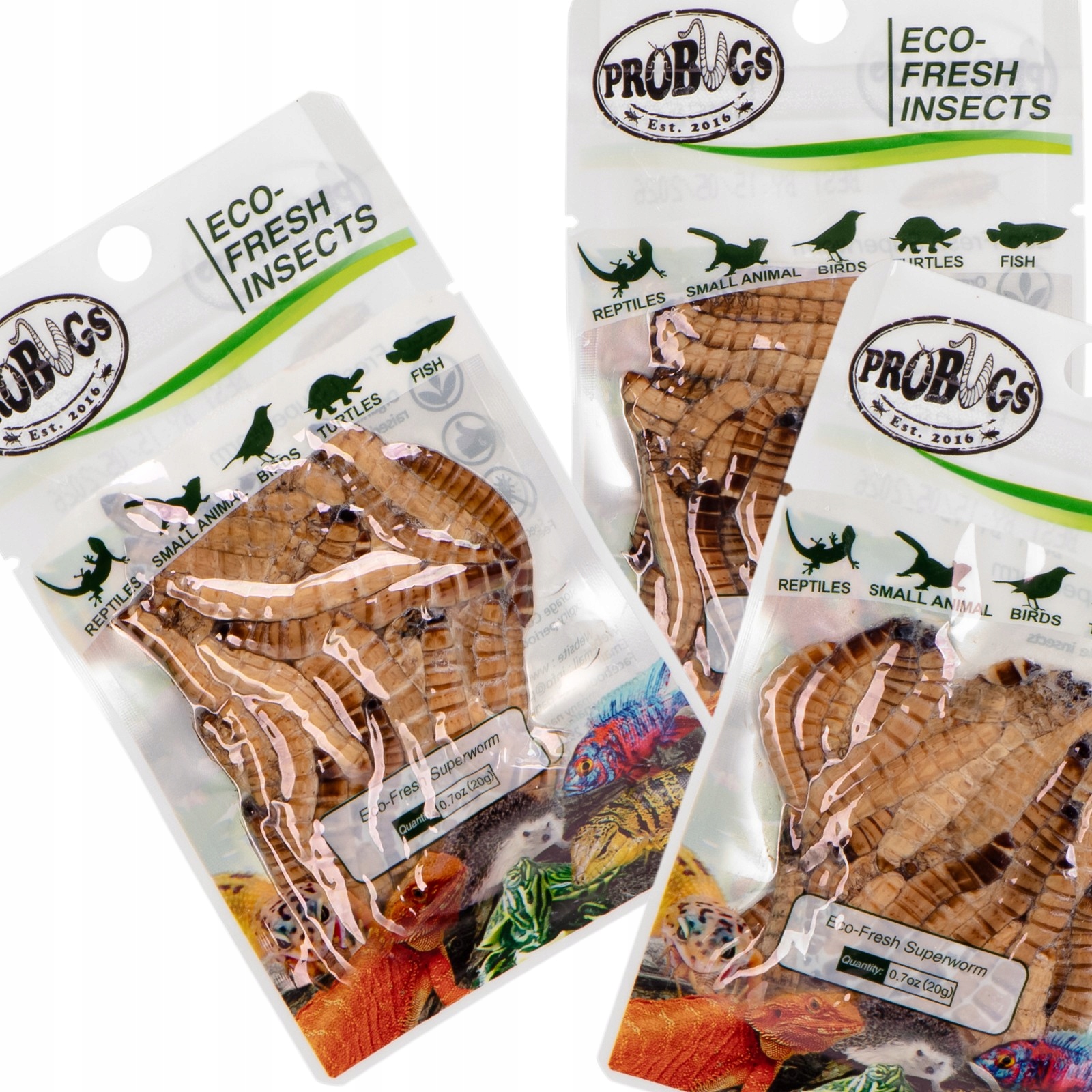 Свежие, сочные, полные питательной ценности личинки древоточца – натуральный корм, который как живой и сохраняет 100% питательной ценности! Никаких пустых, высушенных оболочек, как у сушеных червей, нет риска заболеваний, как у живых червей. ProBugs гарантирует, что вы накормите своего питомца здоровым, безопасным и мясистым лакомством. 15 пакетиков в коробке производителя.
