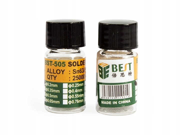 Шарики предназначены для восстановления электрических соединений в системах BGA. Стеклянный контейнер не позволяет шарикам накапливать статическое электричество. Продукция BEST отличается высокой долговечностью и качеством.