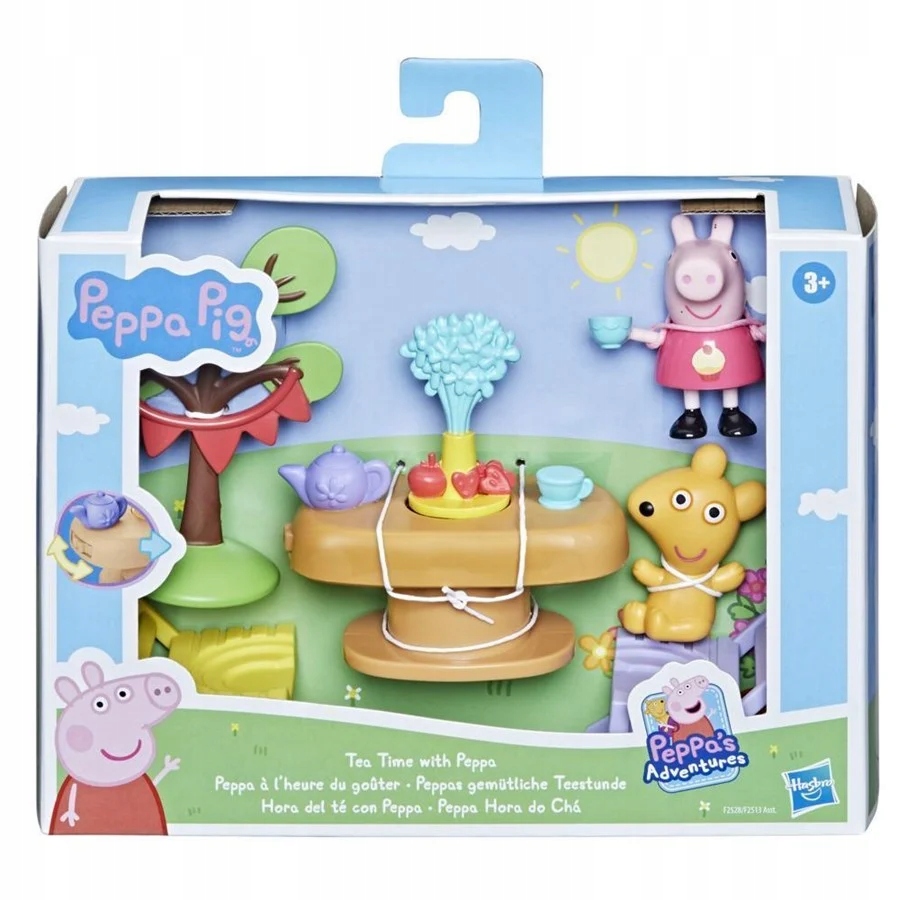 В комплект также входит плюшевый мишка Пеппа (почетный гость), ёлка, украшенная гирляндой, 2 стула и специальный столик с колесиком. Стоит детской ручке повернуть колесико, как из середины стола выдвигается полка, на которой открываются бутерброды и кексы! Дошкольники и любители Пеппы от 3 лет весело проведут время, устраивая с ними самые удивительные чаепития. этот очаровательный набор.
