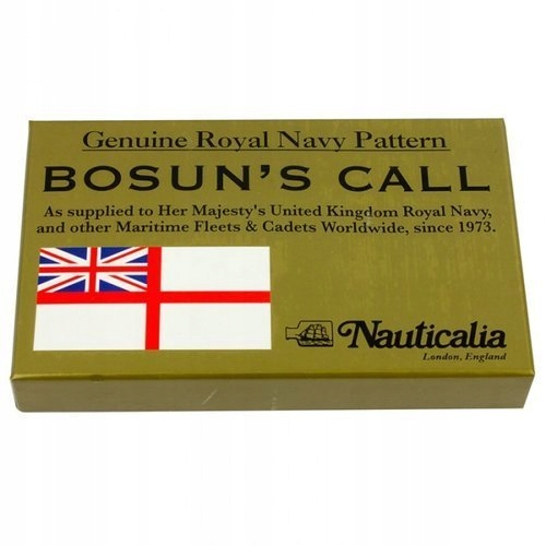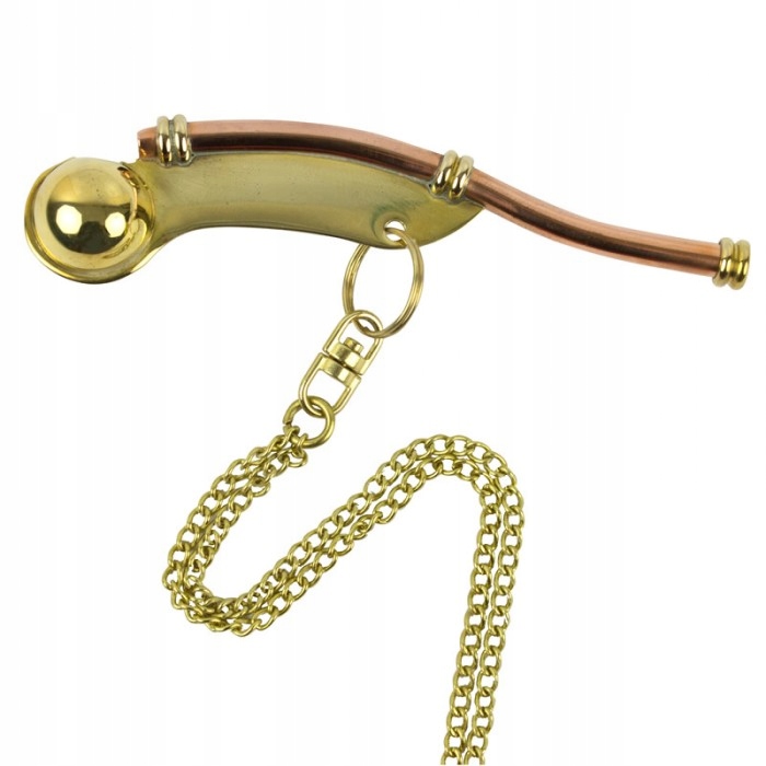 Точная копия традиционного боцманского свистка Королевского флота, изготовленная из латуни и меди, подвешенная на длинной цепочке с вертлюгом на конце. В старину во время плавания команды боцман подавал с помощью специального свистка, высокие тона которого легче было услышать при сильном ветре и шуме волн. Стильный морской гаджет - из коллекции британской компании Nauticalia Ltd. Поставляется в картонной коробке.
