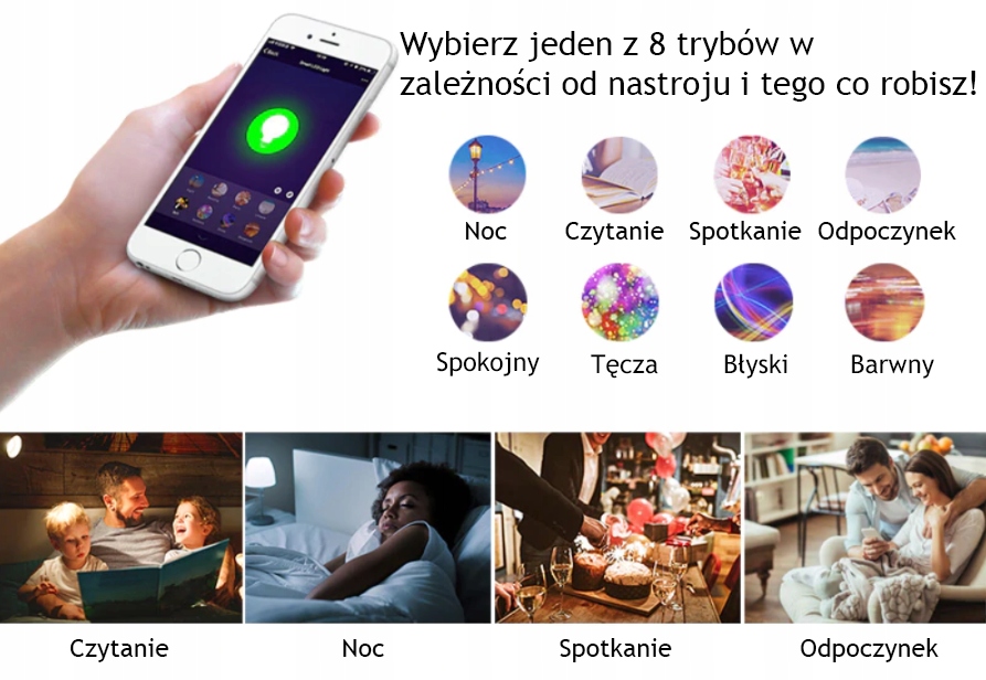 Связь 2.4G обеспечивает оптимальную дальность действия и эффективность передачи — без эффекта задержки. Источник может отображать любой цветовой оттенок из палитры RGB и белый цвет от теплого, до нейтрального и холодного – CCT, RGB+CCT. Программное обеспечение имеет обширные функции управления освещением, диапазон в 16 миллионов цветов, регулировку цвета белого света и диммер. Вы можете установить определенные режимы работы освещения. Предопределенные режимы для занятий, которые вам нравятся: декоративное освещение, просмотр фильмов, отдых, вечеринка...