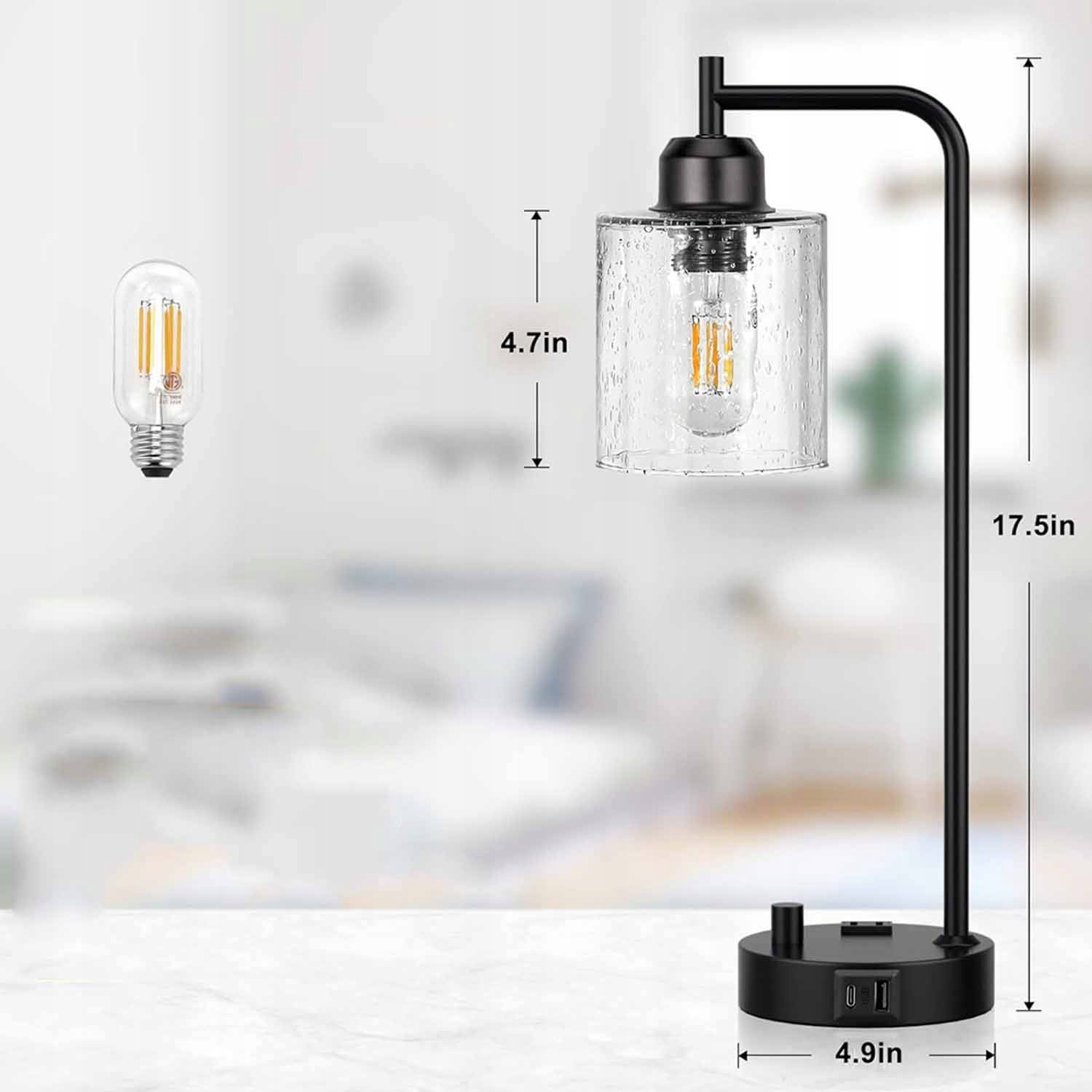 ЛАМПА ДЛЯ СПАЛЬНИ ЛОФТ РЕТРО E27 НАСТОЛЬНАЯ ЛАМПА ДЛЯ СПАЛЬНИ С 2 РОЗЕТКАМИ USB