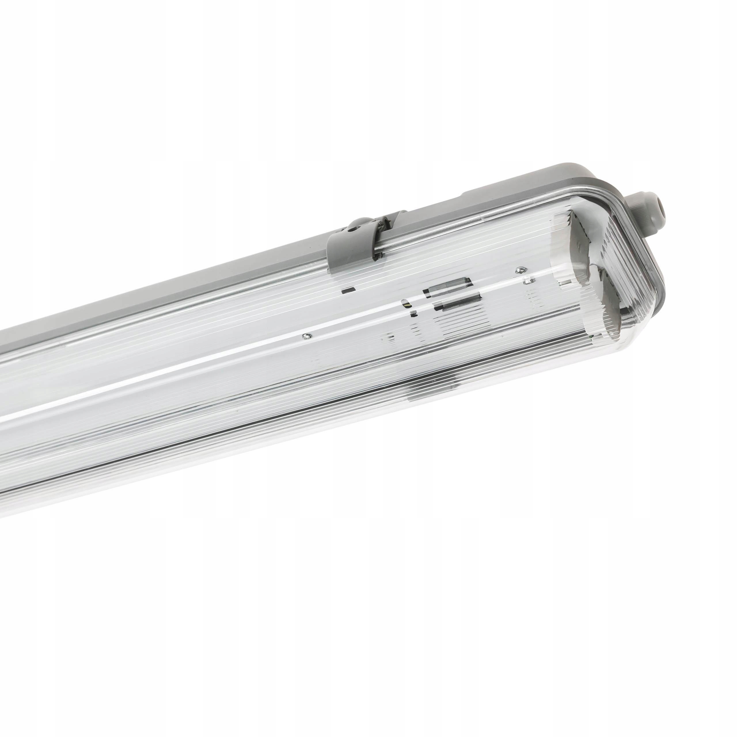 Светильник герметичный IP65, пустой, для одной или двух светодиодных люминесцентных ламп, длиной 60 см. Очень хорошее качество изготовления, пластик не выглядит как бумажный. Прямое подключение к сети