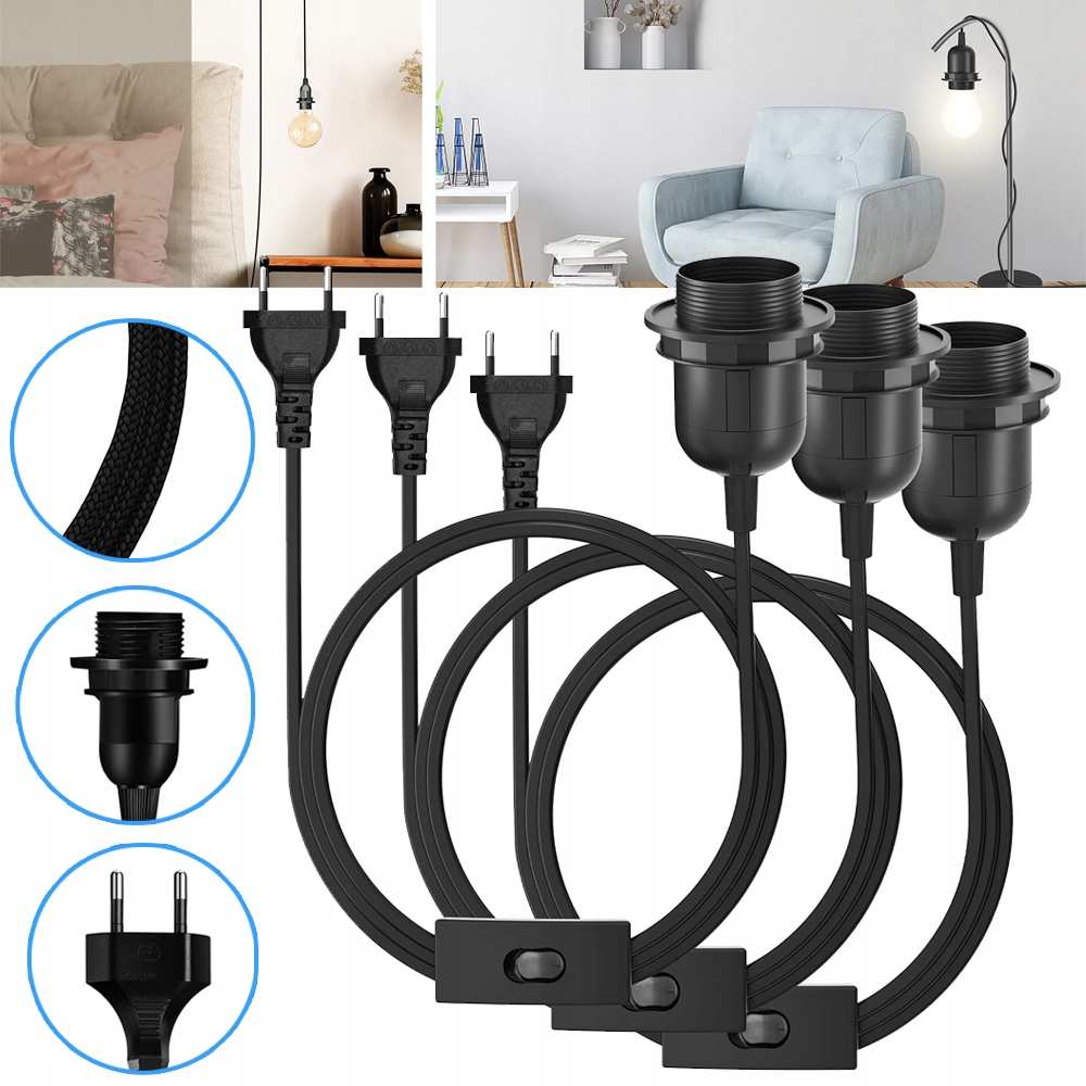 СВІТИЛЬНИК ЛАМПИ Е27 З КАБЕЛЕМ 3 М, ВИМИКАЧЕМ, ПІДВІСКА ПІДВІСНОЇ ЛАМПИ
