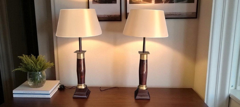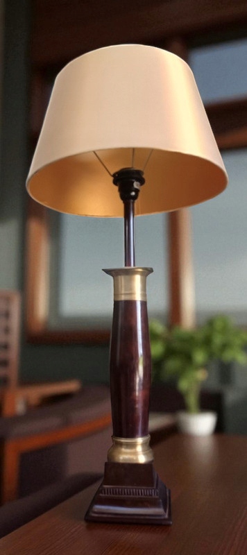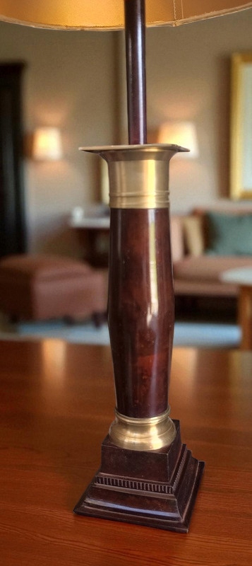 Лампа б/у и в очень хорошем состоянии. Изготовлен из мрамора и латуни, абажур цвета экрю, состояние хорошее, без повреждений. Привезено из Франции; очень декоративен и элегантен.