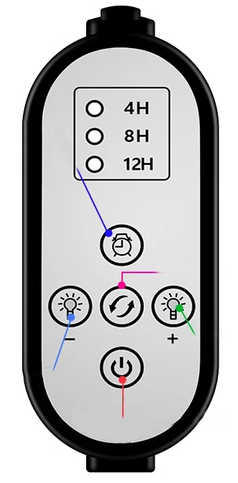 Встроенный таймер позволяет установить автоматическое отключение через 3, 9 или 12 часов работы, что оптимизирует световой режим в зависимости от потребностей растений.