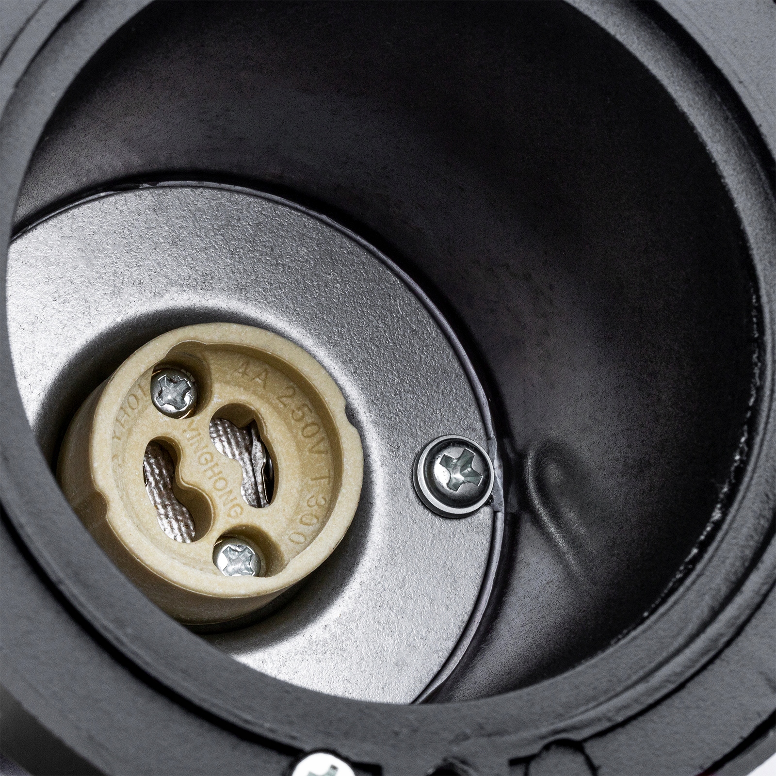 Куб GU10, расположенный внутри светильника, позволяет установить лампу в форме рефлектора максимальной мощностью 12Вт в случае светодиодной лампы и 50Вт в случае галогенной лампы.