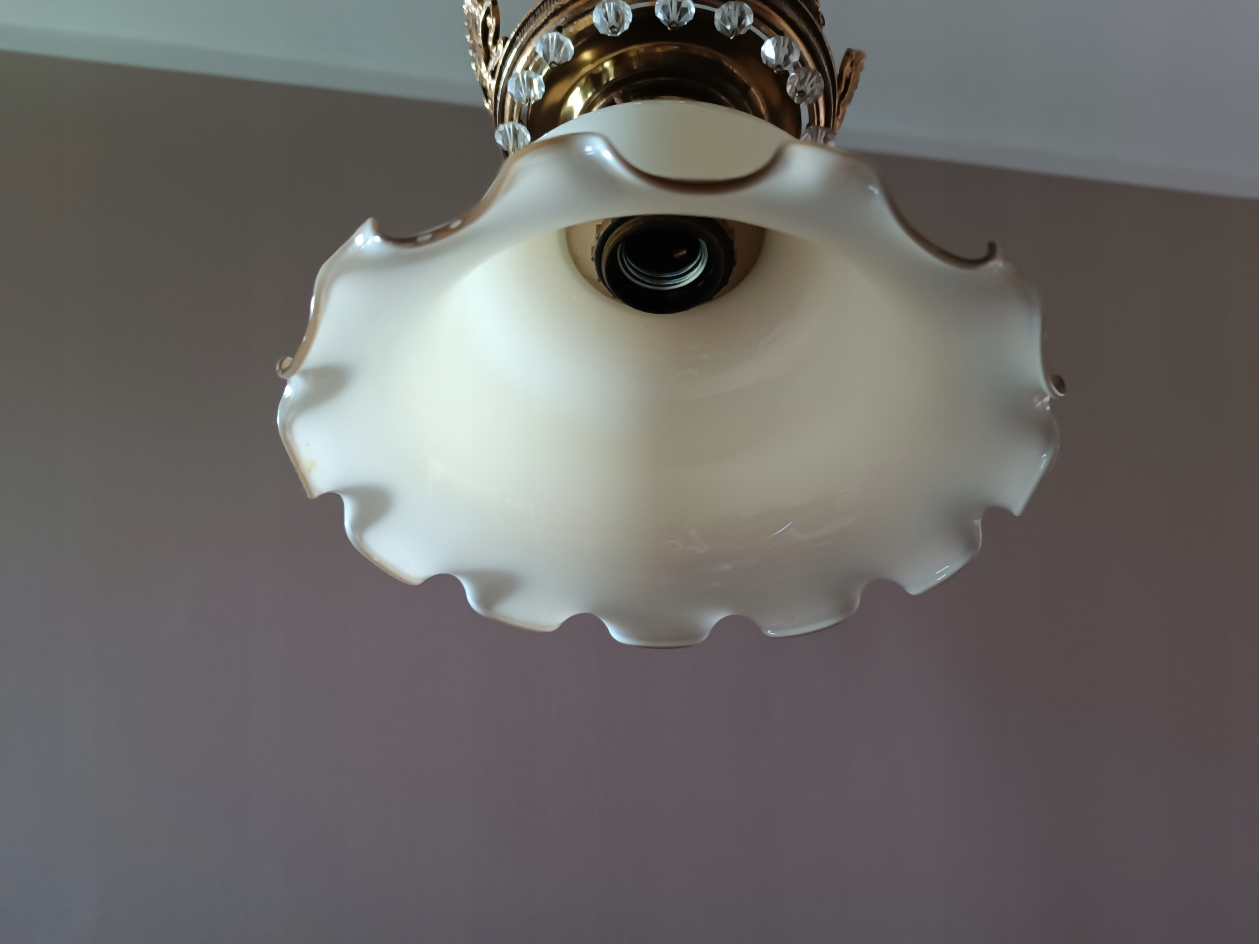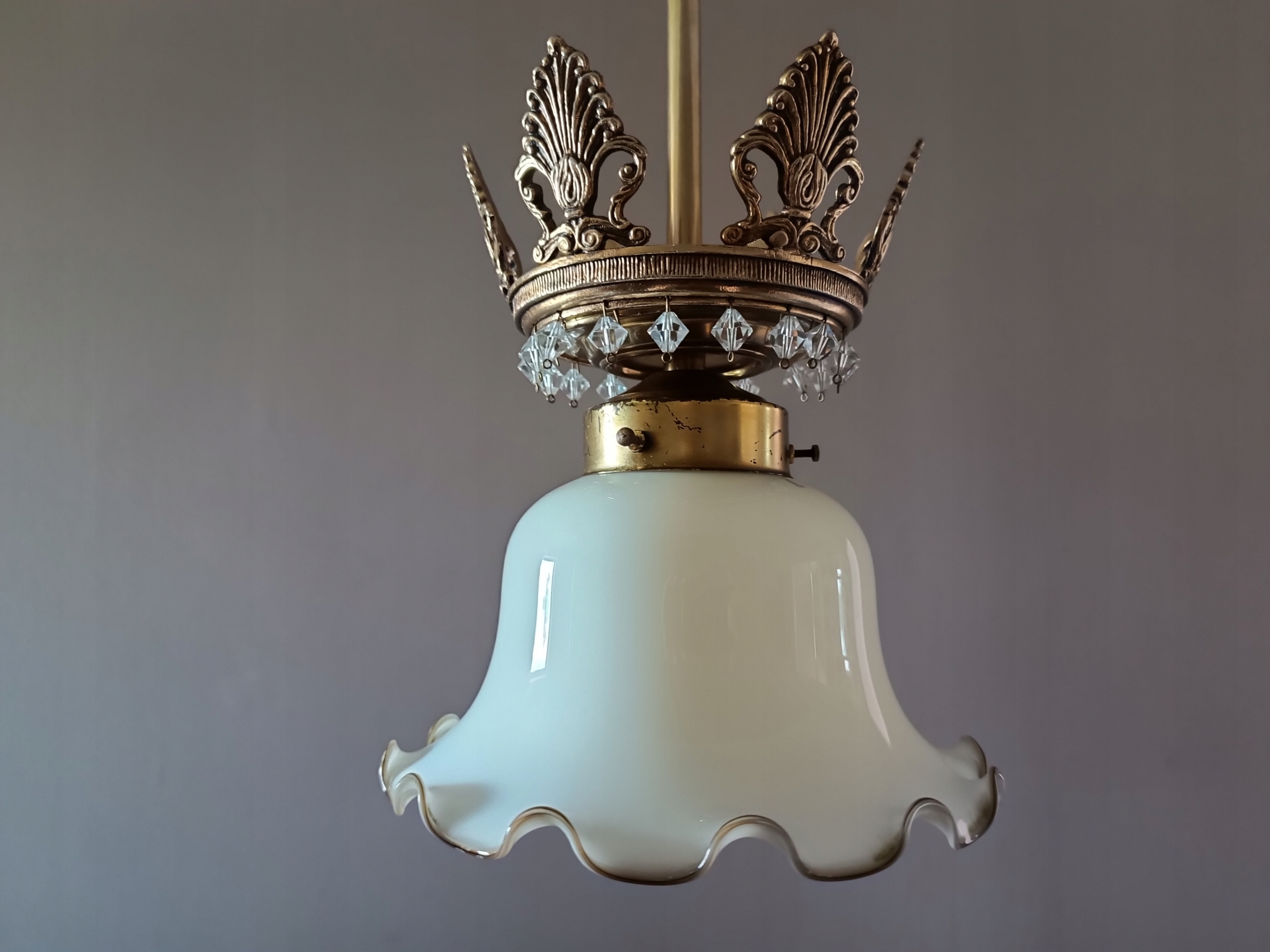 Подвесной светильник, ваниль, латунь с кристаллами #740