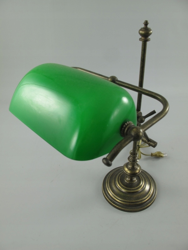 Классическая латунная офисная лампа с удлиненным зеленым абажуром, называемая лампой нотариуса или банкира!