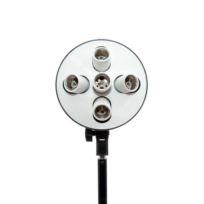 В комплект входит кабель питания. Устройство имеет предохранитель. Софтбокс рассчитан на работу с пятью лампочками максимальной мощностью 65 Вт каждая. Софтбокс позволяет поэтапно регулировать мощность путем включения/выключения каждой лампочки (0-20%-40%-60%-80%-100%). Комплект крепится к осветительным стойкам с помощью встроенной ручки. что позволяет любую регулировку угла наклона.