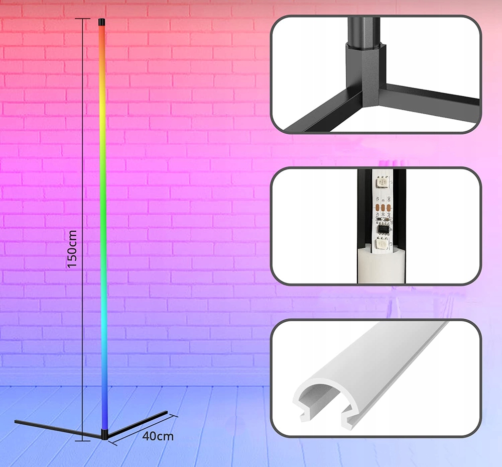 LED RGB НАПОЛЬНАЯ УГЛОВАЯ СВЕТИЛЬНИК 150CM