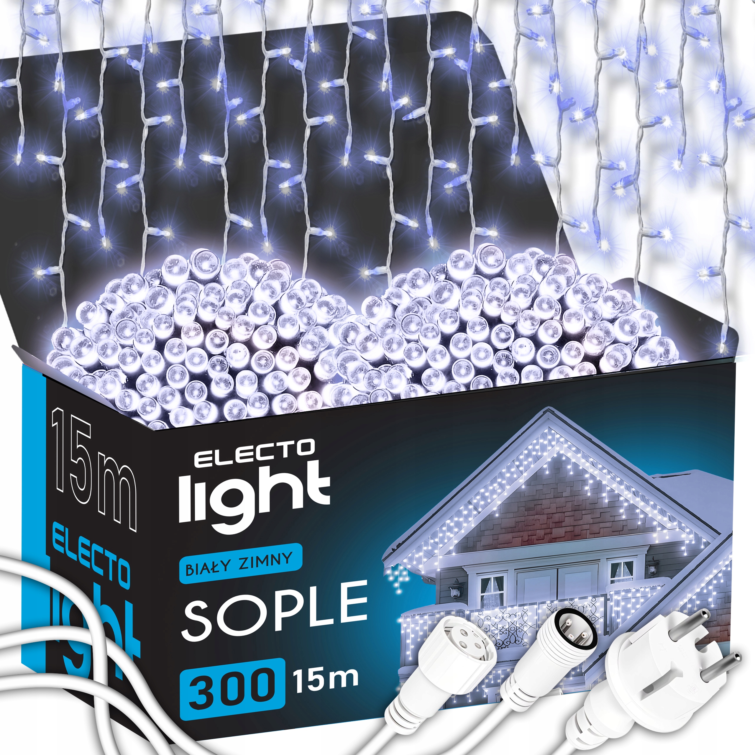 ICILICAL ЛАМПЫ 300 LED НАРУЖНЫЕ ХОЛОДНЫЕ БЕЛЫЕ 15м ГИРЛАНДИЯ IP44 ЭФФЕКТ ВСПЫШКИ