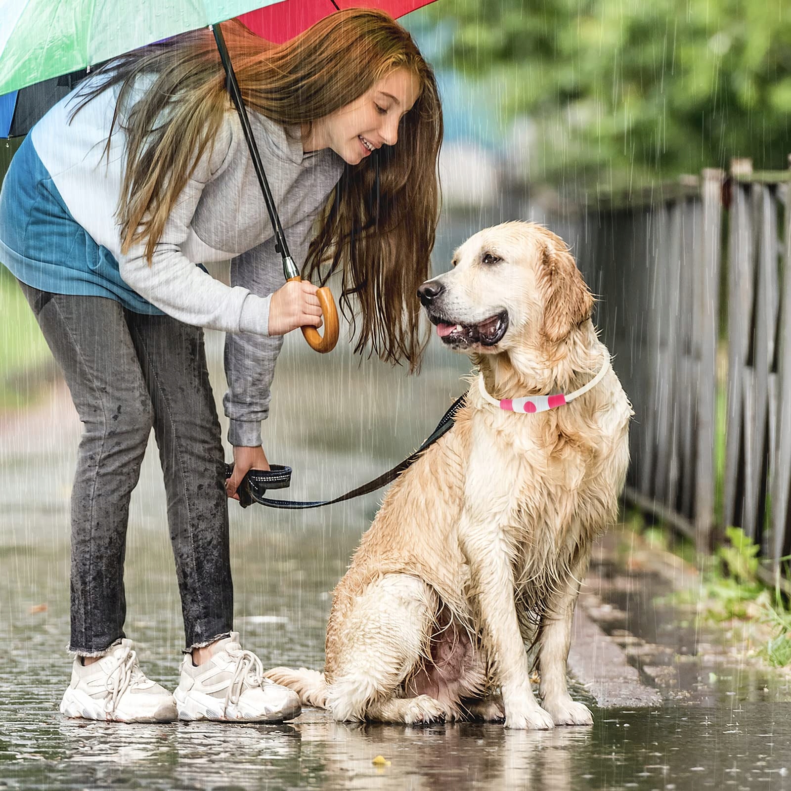 - Этот ошейник водонепроницаем, защищает от дождя, снега и луж.