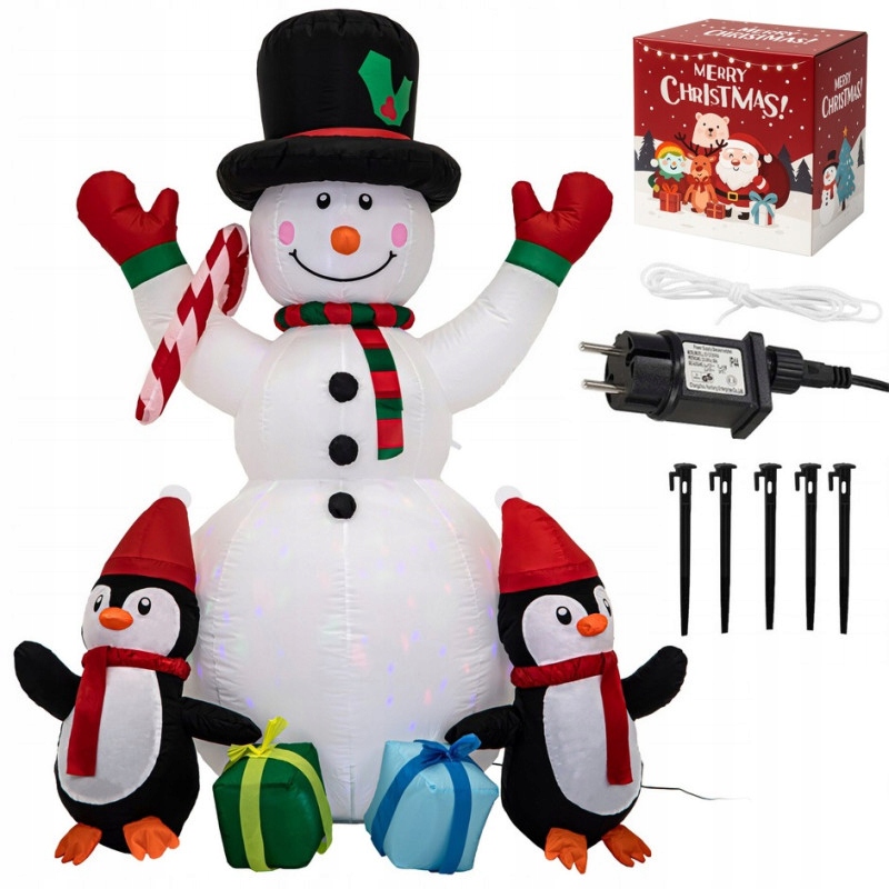 СВЕТЯЩИЙСЯ НАДУВНОЙ СНЕЖИК ПИНГВИНЫ РОЖДЕСТВЕНСКОЕ УКРАШЕНИЕ СВЕТОДИОДНЫЙ RGB ОРНАМЕНТ 180 СМ