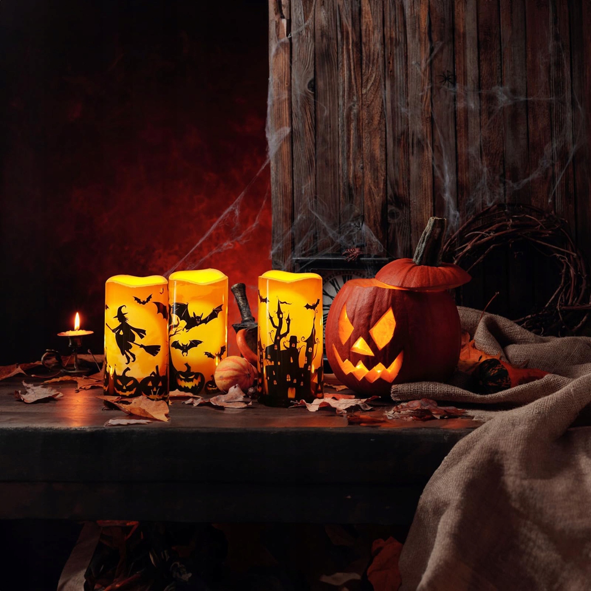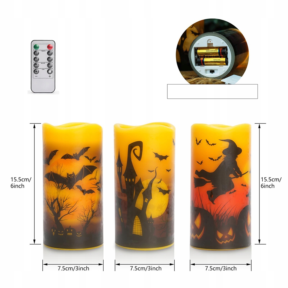 Свечи свечи на Хэллоуин с мерцающим эффектом и отдаленным таймером