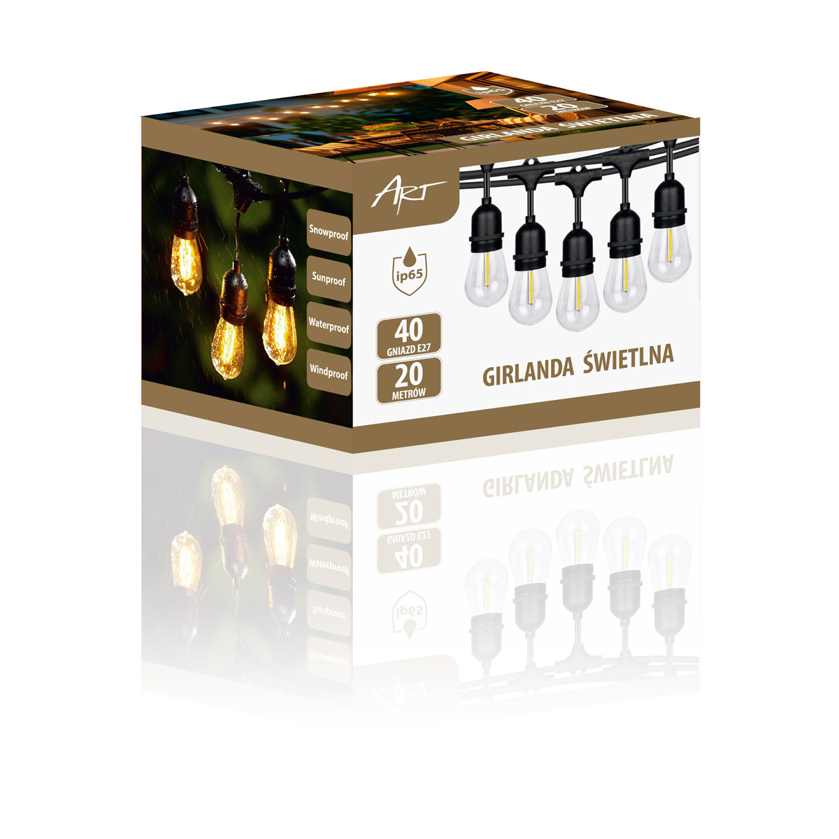 Светодиодная цепь садовой гирлянды 40x лампочка E27 IP65 2700K 20M Art