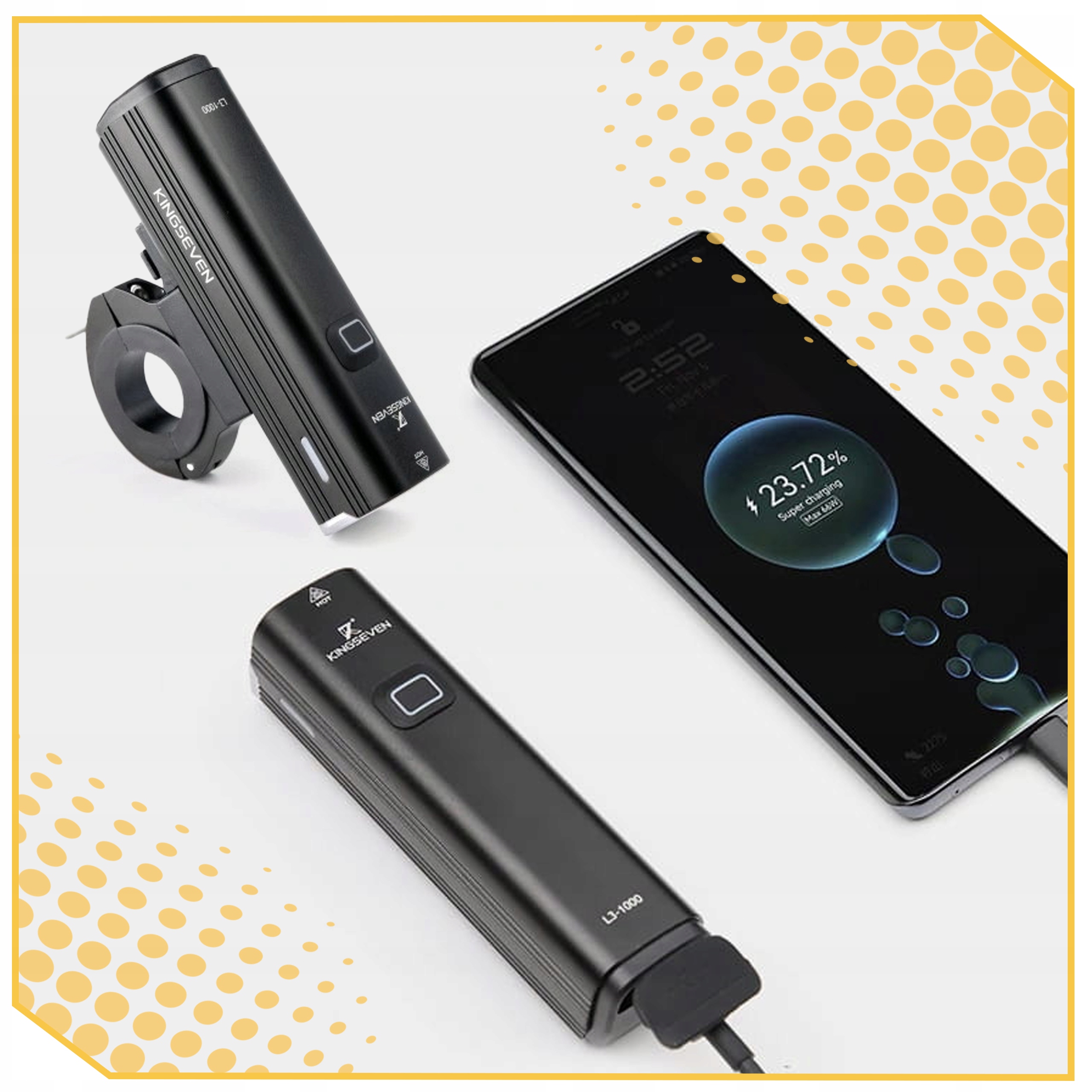 передняя лампа Kingseven может действовать как банк мощности. Он был оснащен портом USB-C, благодаря которому вы зарядите телефон, если это необходимо ! Это идеальное решение в отсутствие доступа к электричеству.