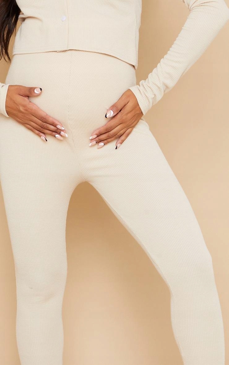 Легкие бежевые ребристые адаптированные брюки для беременных