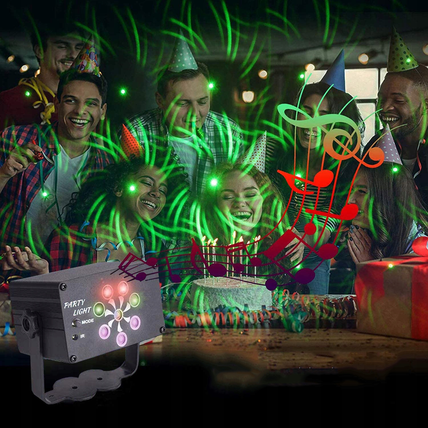 - ② Многофункциональное освещение для вечеринок: стробоскопический свет имеет 8 источников света (красный и зеленый, а также светодиодную подсветку). , 240 шаблонов, цвет и скорость меняются в зависимости от ритма звука/музыки. Удивительное сочетание делает ночь более красочной.