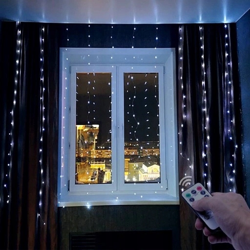 СВЕТОДИОДНАЯ СВЕТОВАЯ ЗАНАВЕСА ДИСТАНЦИОННАЯ 3X2 ТЕПЛЫЙ БЕЛЫЙ Крючки