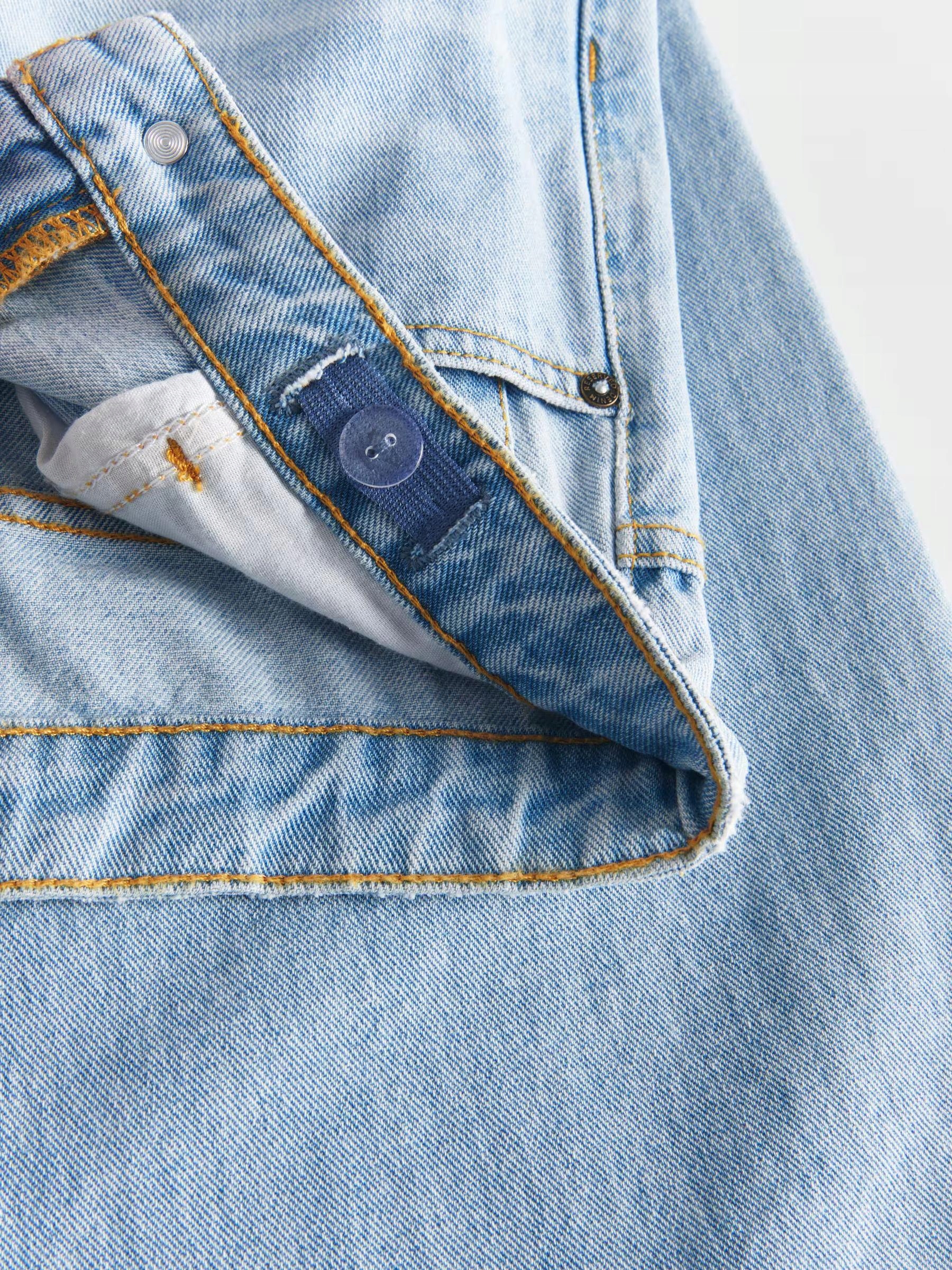 Голубые джинсовые карманы широкие карманы отверстия 140