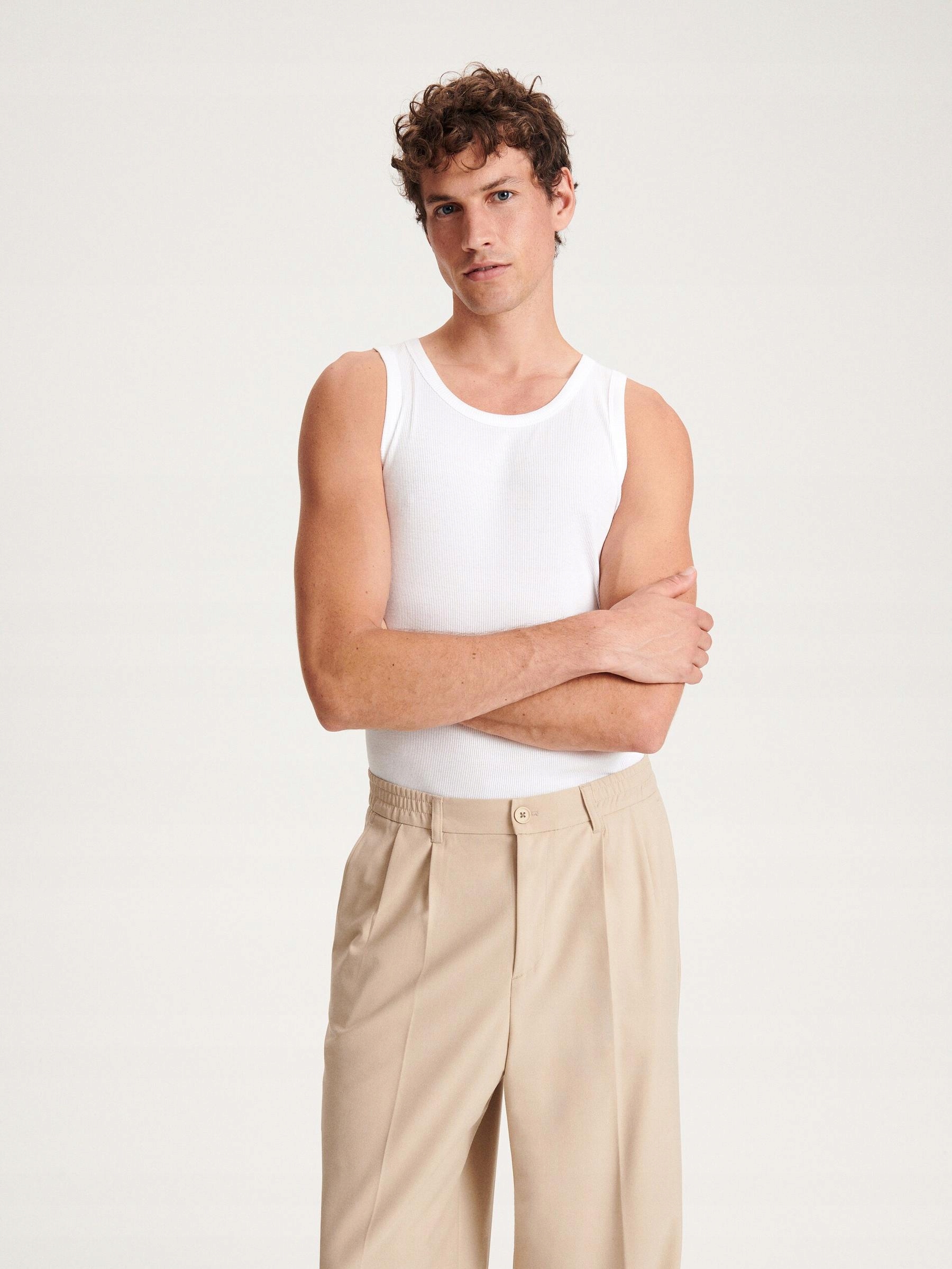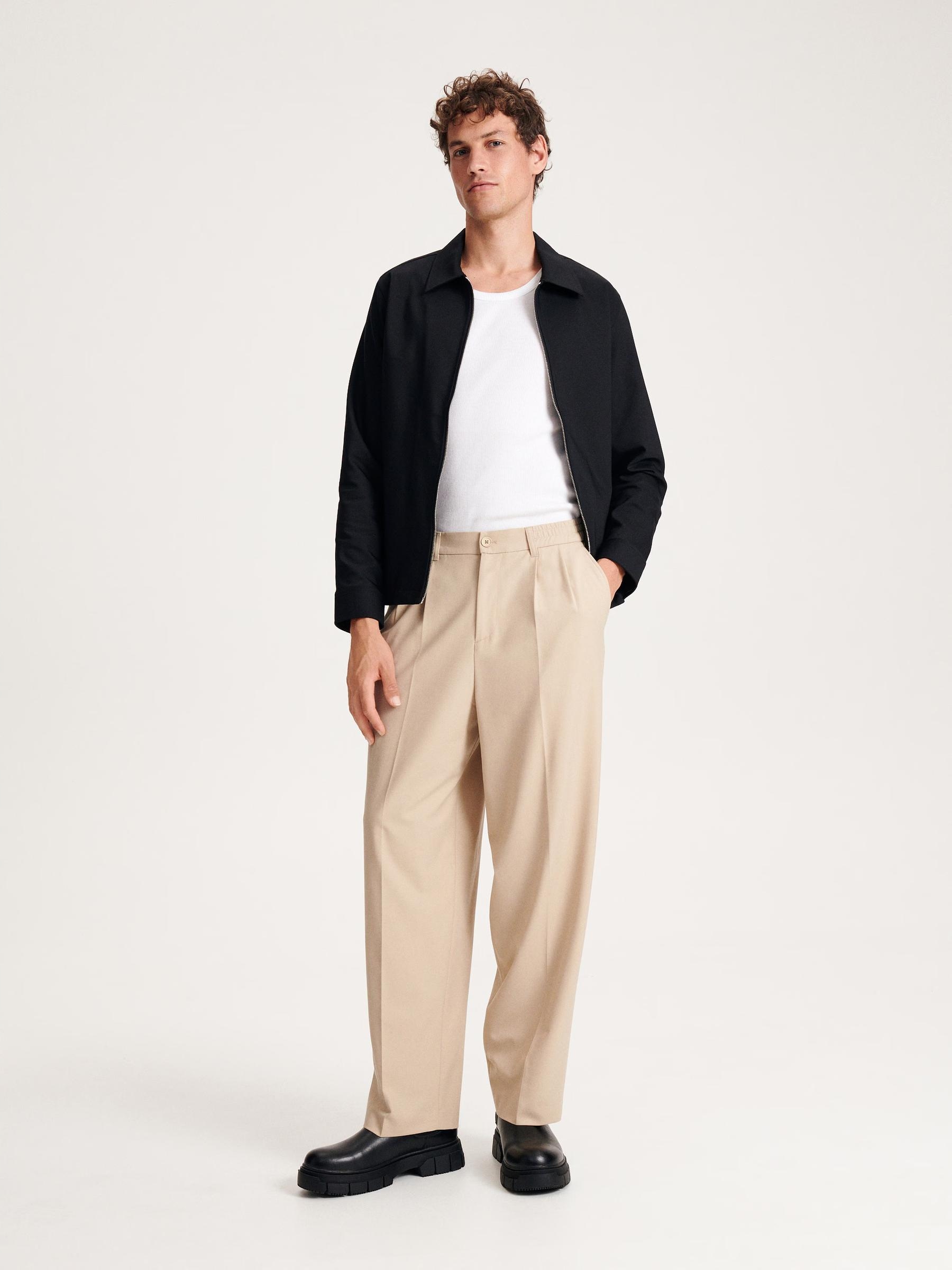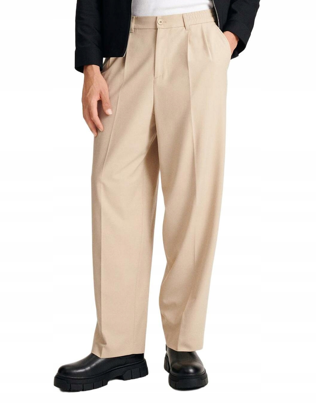 СВЕТЛО-БЕЖЕВЫЕ БРЮКИ ИЗ ШИРОКОЙ ТКАНИ CLASSIC RESERVED L