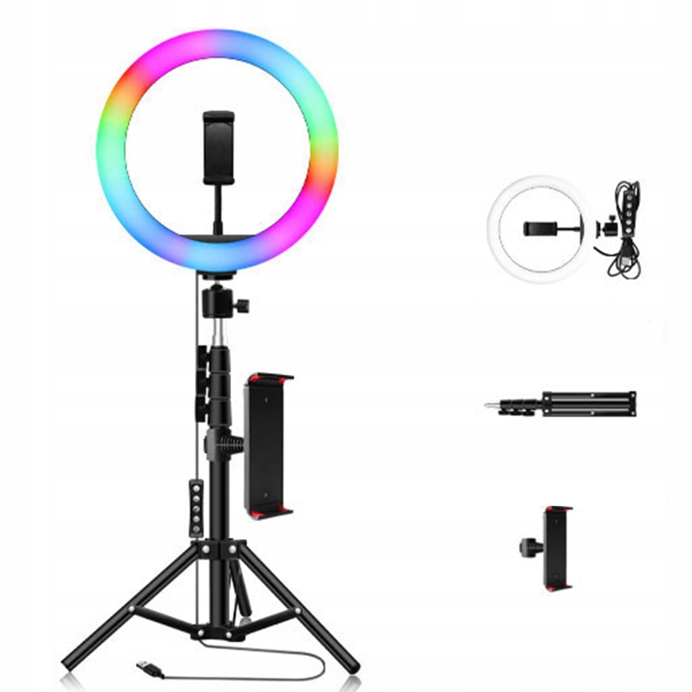 【10-дюймовый светодиодный кольцевой светильник】 Внешний диаметр: 26 см, внутренний диаметр 20 см, 120 светодиодных фонарей со всех сторон точные, без проблем с тенями; цветовая температура 3200–5600 К, регулировка яркости, 3 цветовых режима (теплый/естественный/холодный) и 10 уровней яркости для каждого режима, легко настраивается в зависимости от условий освещения