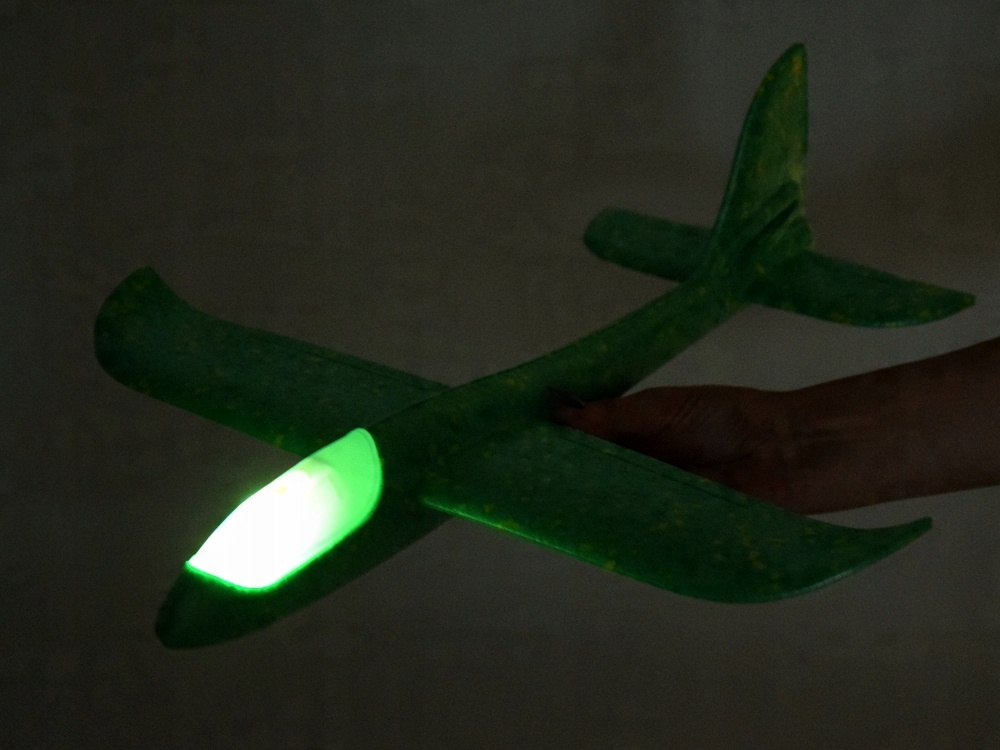 - Самолет из пенополистирола со светодиодной подсветкой – классическая игрушка, предназначенная для маленьких и больших детей. Игрушка, полностью изготовленная из пенопласта, легкая, имеет обтекаемую форму, обеспечивающую эффектное скольжение, и совершенно безопасна, нет риска причинить вред окружающей среде.