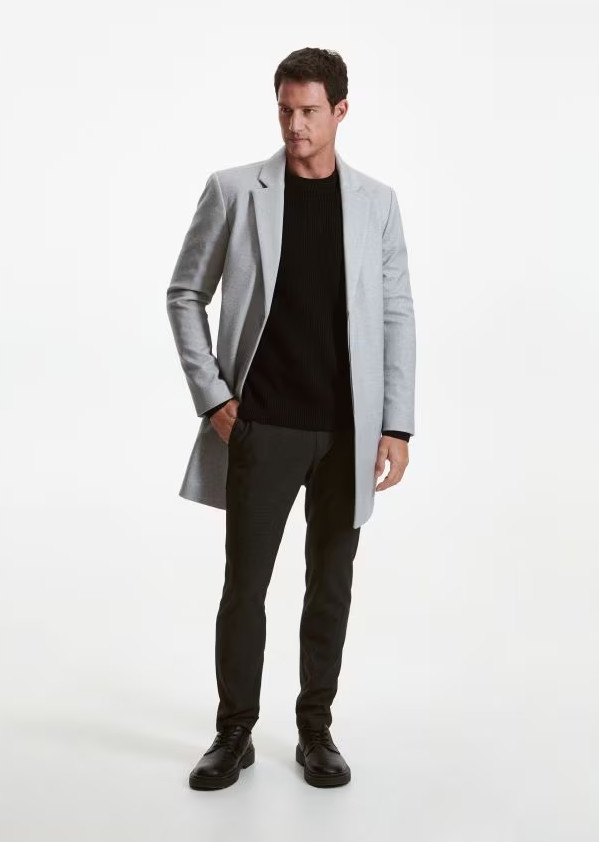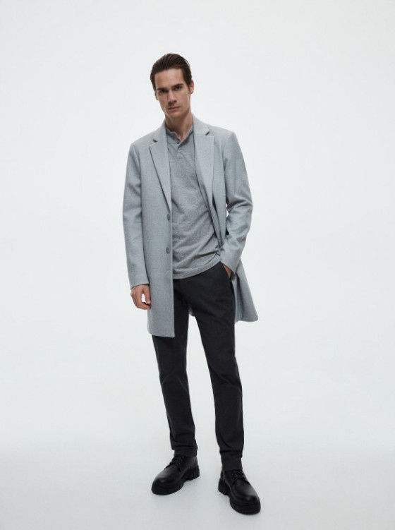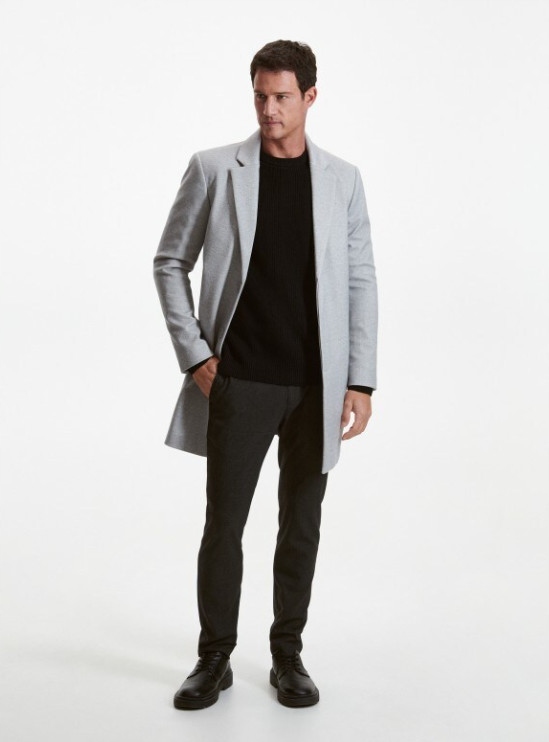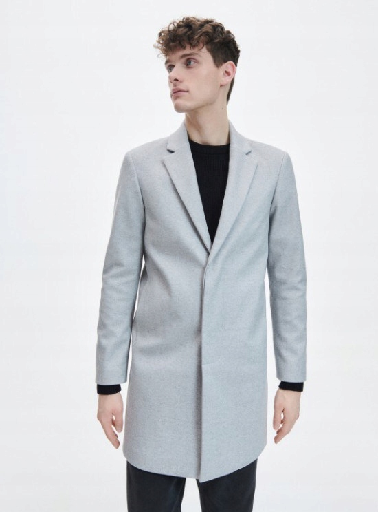 СВЕТЛО-СЕРОЕ ПРЯМОЕ ПАЛЬТО, С ДЛИННЫМ РУКАВОМ, ОДНОРОДНОЕ, КАРМАНЫ, ОДНОПАРАННОЕ М.