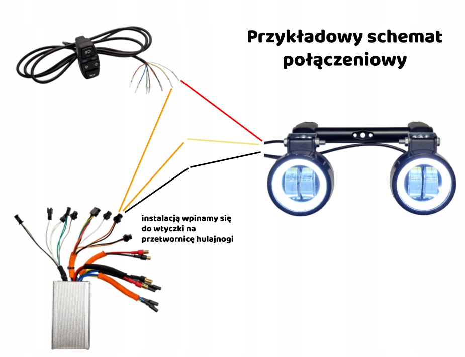 Поставка лампы составляет 12-80 В, поэтому вы можете подключить их непосредственно перед конвертером скутера