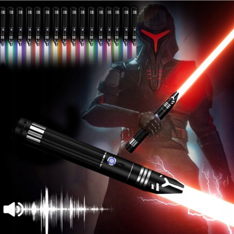 - Недавно модернизированный съемный лезвий: Удалите разъем в нижней части светового меча, чтобы повернуть и соединить два световых меча друг с другом. звуковой эффект от удара датчика (переключение звукового эффекта + звуковой эффект обнаружения гравитации, длинное нажатие на 2 секунды, чтобы отключить звуковой эффект)