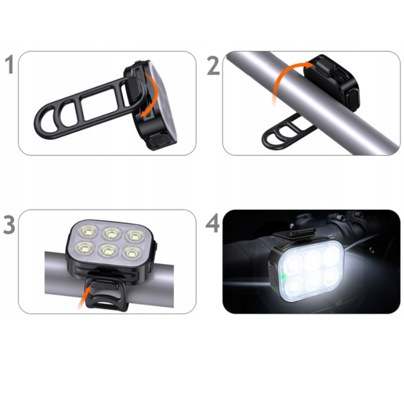 Идеальный набор из двух велосипедных ламп является надежным источником света для каждого велосипедиста - независимо от погодных условий. Компактный, легкий, сильный и водонепроницаемый - будет работать ежедневно и на дороге. Благодаря гибкой силиконовой ручке вы установите не только на велосипеде, но и на рюкзак или сумке.