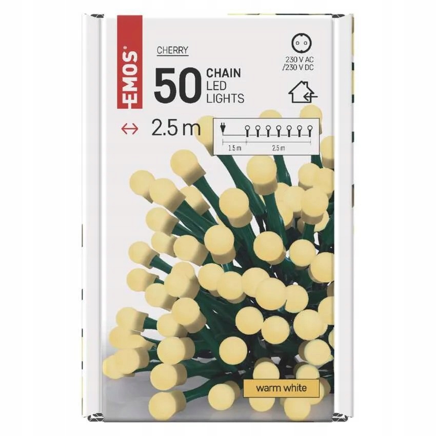 ✅ Продукт Рождественские огни рождественские мячи 50 светодиодные 2,5 м. Тепло белый D5GW01 Emos поступает из нашего журнала. Это оригинальный продукт, приобретенный по контракту с производителем EMOS.
