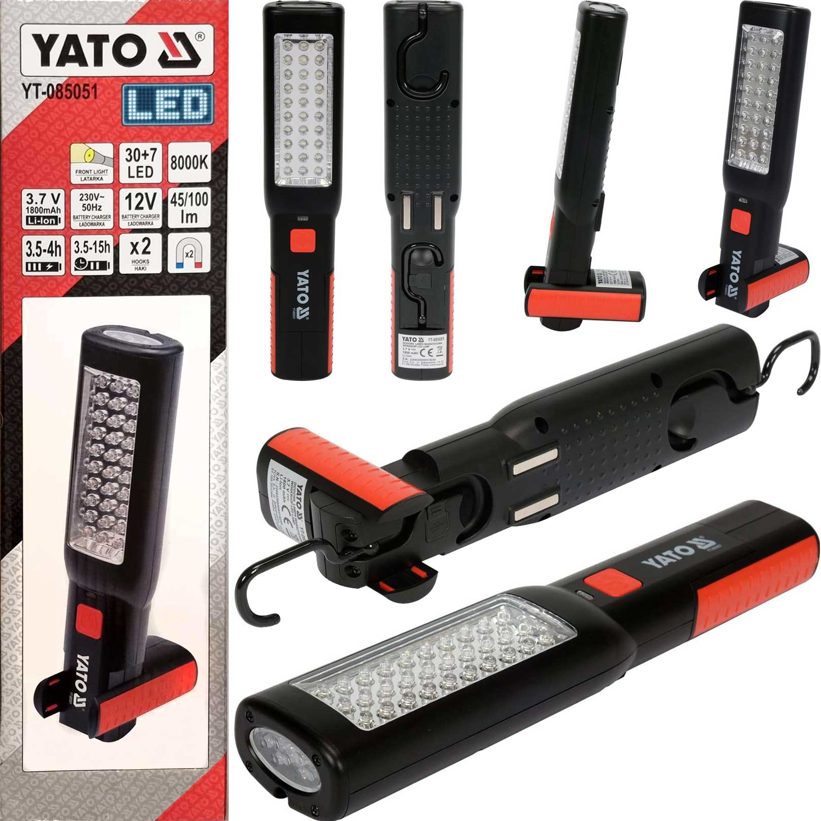 Аккумуляторная лампа для мастерской YATO с основным светом 100 лм и фонариком 45 лм. Модель, оснащенная емким литий-ионным аккумулятором емкостью 1800 мАч, обеспечит минимум 3,5 часа непрерывной работы. Изготовлен из прочного материала ABS, обеспечивающего класс механической защиты IK05. Вращающийся корпус, 2 крючка и 2 магнита позволяют правильно регулировать световой луч. Продолжение бестселлера YT-08505.