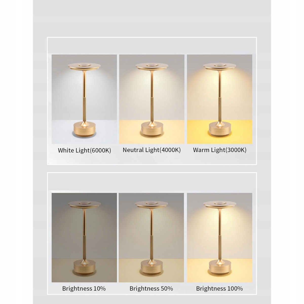Оснащен чувствительным сенсорным датчиком в верхней части небольшой лампы, Вы можете настроить цвет или затемнение. Беспроводная лампа имеет три цветовые температуры 3000K/4500K/6000K на ваш выбор, переключайте цвет света одним щелчком мыши. Длительное нажатие позволяет регулировать яркость от 10% до 100%.