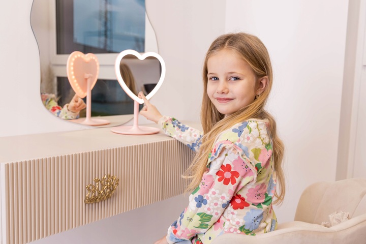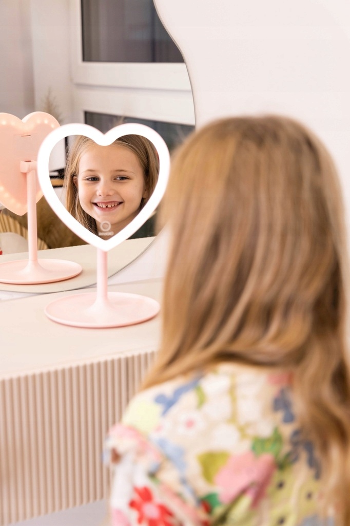 Красивое зеркало в форме сердечка со светодиодной подсветкой будет отлично смотреться на туалетном столике маленькой принцессы. Привлекательная форма, цвет и подсветка заставят счастливую обладательницу смотреть на свое отражение с удовлетворением и вниманием.
