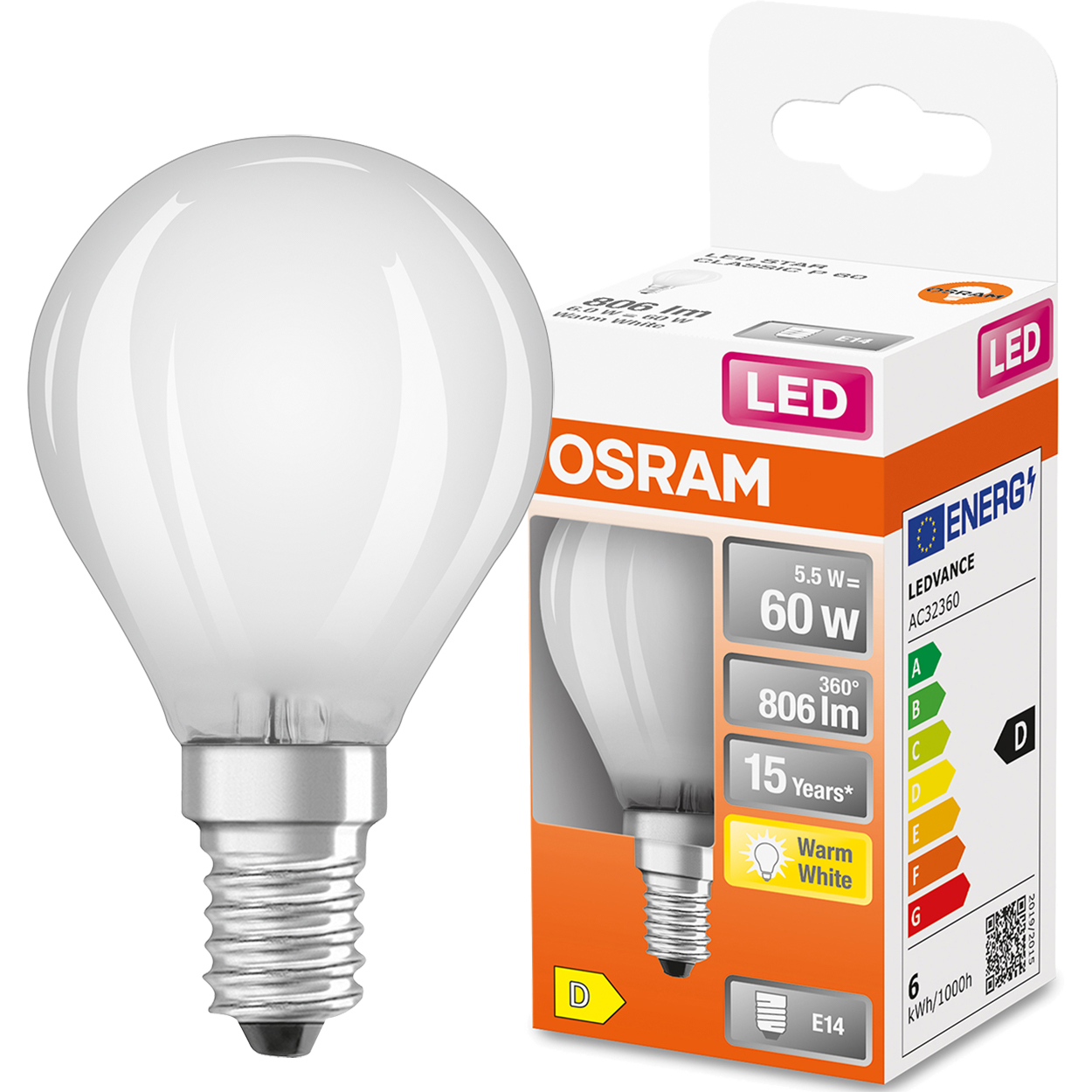 светодиодная луковица уважаемая и признанная в осветительной промышленности серии osram star с ручкой e14 Угла света 300 ° и силой 5,5 Вт (эквивалент классического галегена с высокой энергией -quise -stource -quise -quise -quise -quise -quise -quise -quise -quise -quise -quise -quise -quise -quise -quise -quise -quise -quise -quishality с помощью теплого источника. и легкий поток 806LM
