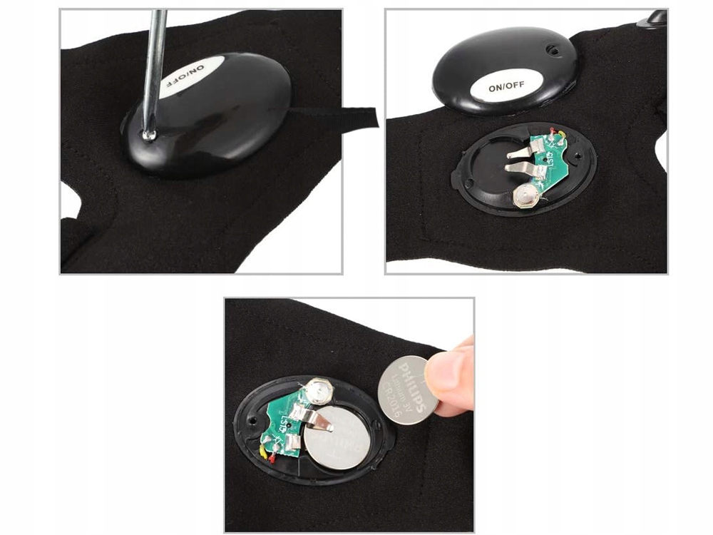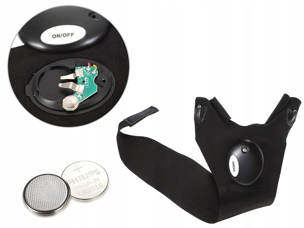 Перчатки оснащены светодиодами и питаются аккумулятором CR2016, которая включена. Палец к перчатку, затем оберните ремешок вокруг запястья и прикрепите крепеж к липучке
