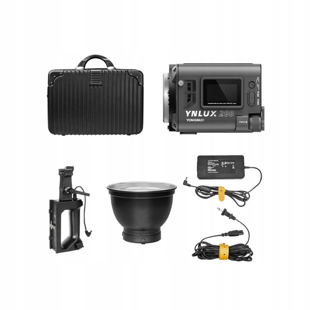 Столичная лампа Yonglight Yngux200-это универсальный источник света, идеально подходящий для освещения маленьких и средних планов фотографий. Он предлагает плавную регулирование мощности и цветовой температуры от 2700 до 6500 К, а также 12 тематических режимов. Использование высококачественного светодиодного чипа COB обеспечивает интенсивный и однородный световой поток и натуральное воспроизведение цвета. Комплект включает в себя абажур Боуэнса, разборку ручки, источник питания и чемодан, обеспечивающий комфортный и безопасный транспорт целого. Потребление мощности лампы - 200 века