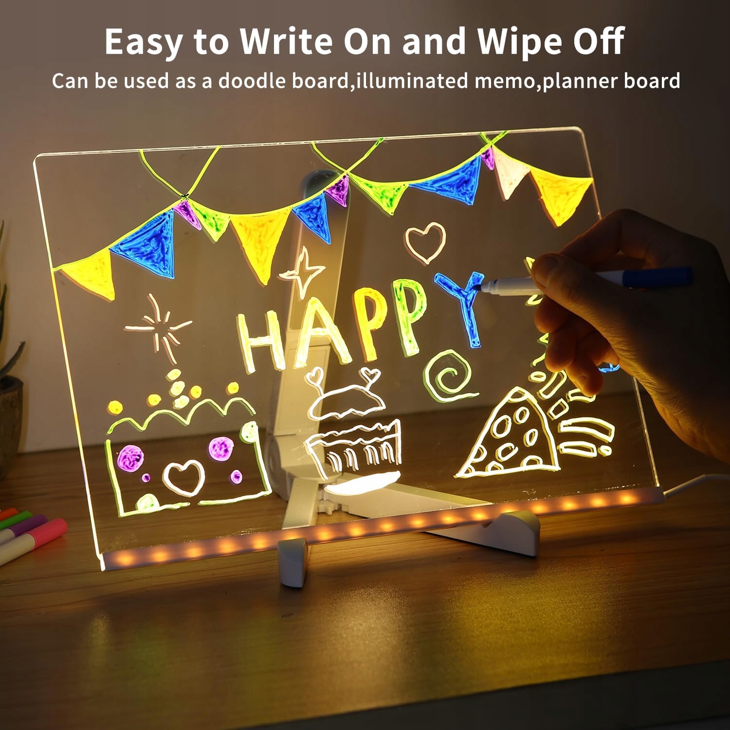 ДОСКА ДЛЯ ЗАМЕТОК СО СВЕТОДИОДНОЙ АКРИЛОВОЙ ПОДСВЕТКОЙ, ЦВЕТНЫМИ РУЧКАМИ И РЕГУЛИРУЕМОЙ ПОДСТАВКОЙ