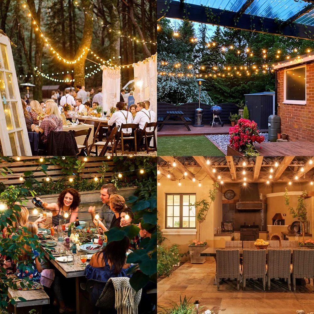 【Комбинированное цепное освещение】 7,5 м/15 м 25/50 2 запасных лампочек. Каждый садовый свет имеет соединение от конца до конца и может быть подключен к 2 светильникам, чтобы покрыть большую площадь. Внешние цепные лампы, идеально подходящие для украшения балконов, террасов, беседки, столовых, спальни и не только. Внешняя цепочка света также может сиять в дождливые дни. Внешнее струнное освещение может украсить сад, забор, балкон, бистро, беседка, палатка, бар, ужин, день рождения и не только. ② Энергетическая экономия: 0,6 Вт на луковицу, экономия более 90% энергии по сравнению с обычными луковицами и не легко генерировать тепло; 3 【Независимое освещение】 Повреждение отдельных лампочек не повлияет на нормальный эффект других луковиц. Садовые лампы просты в установке, и каждая лампочка имеет крючок на боку, чтобы облегчить прикрепление к ветвям или гвоздям. Идеально подходит для украшения внутри и снаружи: терраса, мост, свадьба, вечеринка, отель, кафе, патио. Романтический ужин с семьей и друзьями