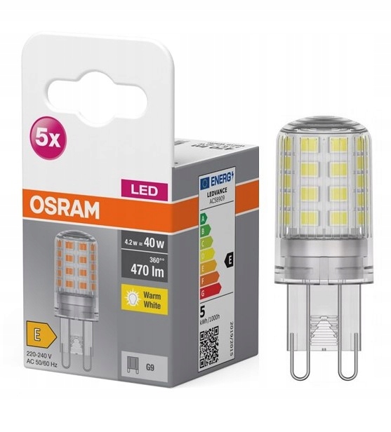 Мы предлагаем: 5 пакетов светодиодных ламп G9 4.2W = 40W 470LM 2700K OSRAM