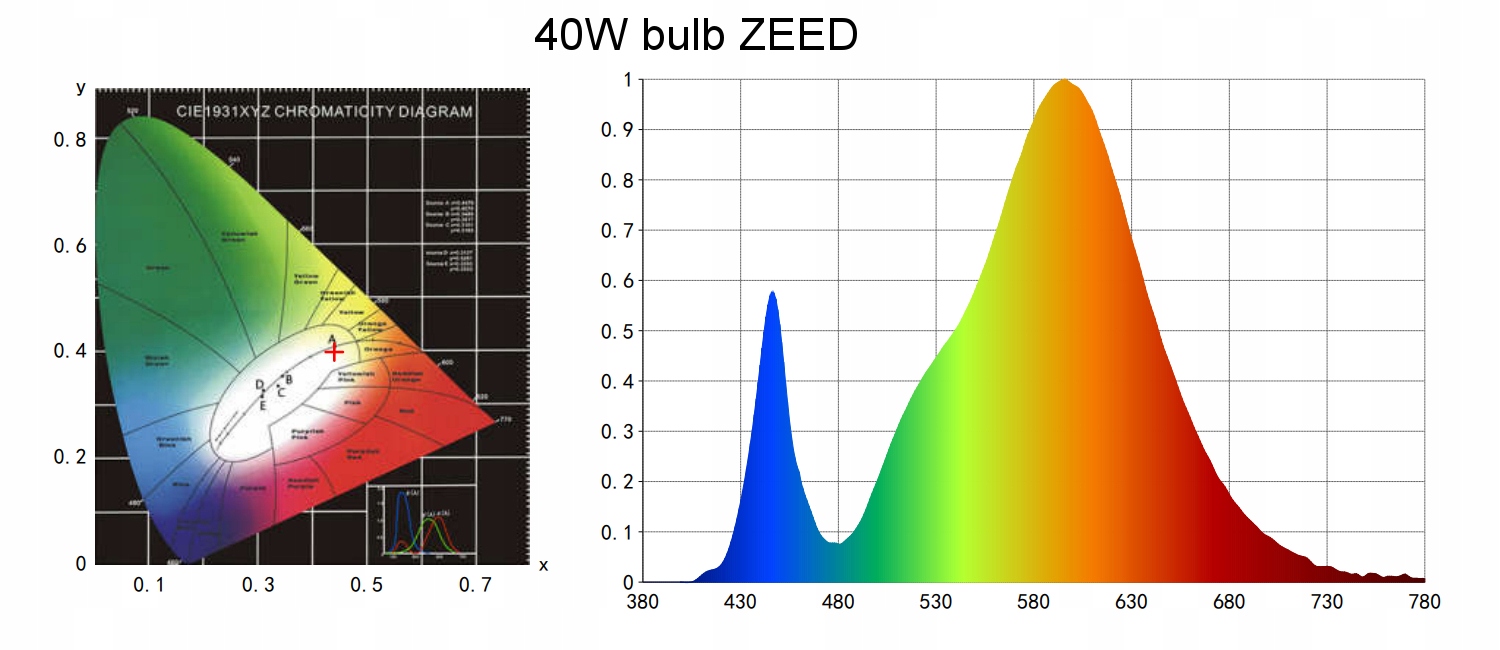 Из -за естественного цвета лампочка не устанавливает глаза и может использоваться в комнатах, где находятся люди. с широким диапазоном длины волны. Один диод сочетает в себе свет: белый, красный, синий, ИК и ультрафиолетовый диод.