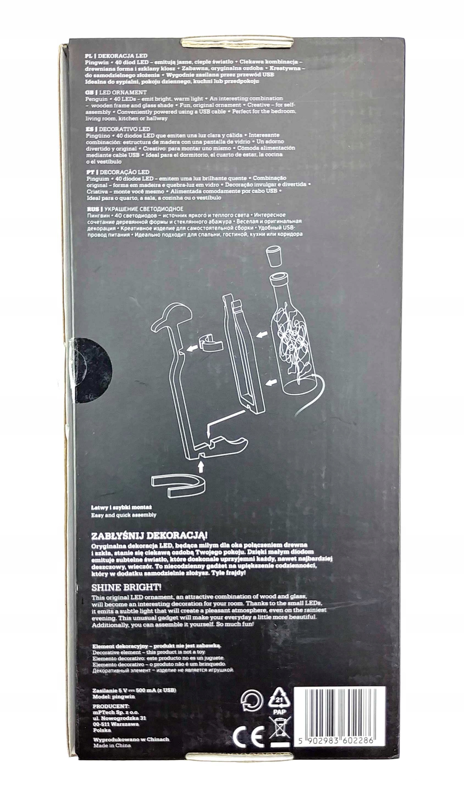 Оплачивая «Світлодіодна декорація 30 см, дерево, скло Пінгвін Новий», вы можете быть уверены, что данный товар из каталога «Рождественские Иллюминации» будет доставлен из Польши и проверен на целостность. В цене товара, указанной на сайте, учтена доставка из Польши. Внимание!!! Товары для Евросоюза, согласно законодательству стран Евросоюза, могут отличаться упаковкой или наполнением.