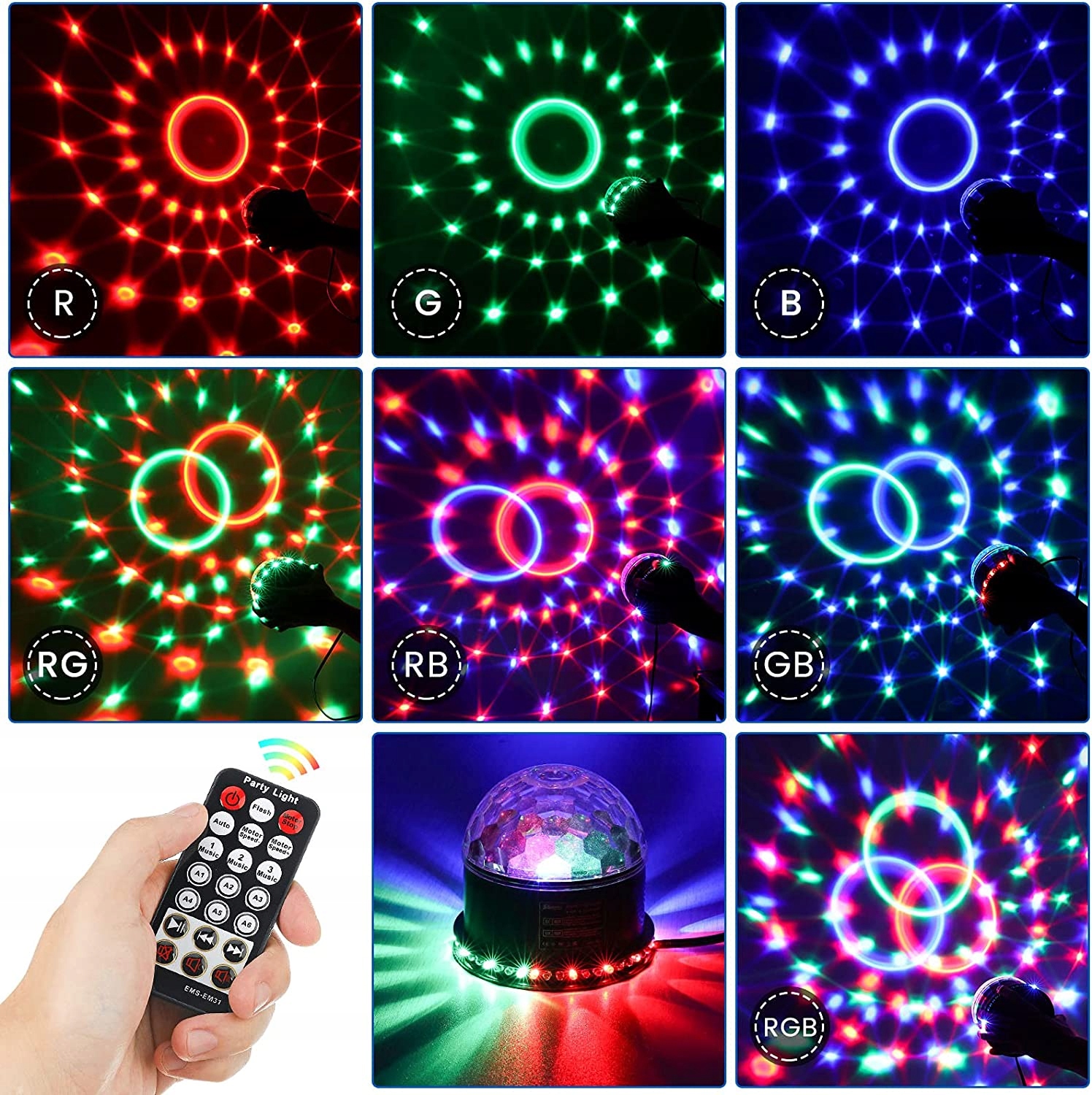 По сравнению с другими диско-шарами, этот диско-шар оснащен 54 разноцветными светодиодами, в том числе 6 вращающимися светодиодами RGB в центре и 48 светодиодами RGB по бокам. Вокруг этих диско-светильников расположен круг светодиодных бусин с уникальным эффектом последовательного мигания.