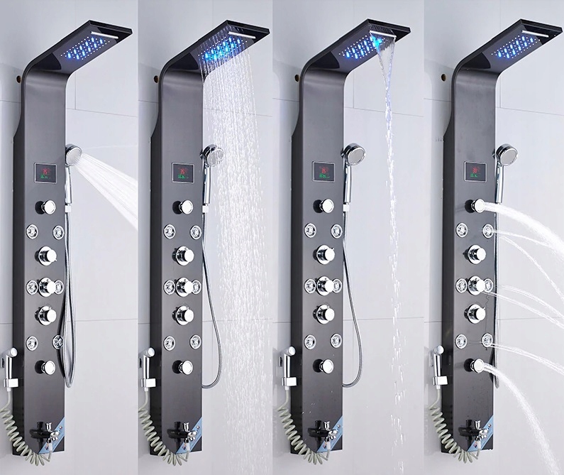 Эксклюзивная, стильная, современная душевая панель с гидромассажем, водопадом, тропическим душем и светодиодами.