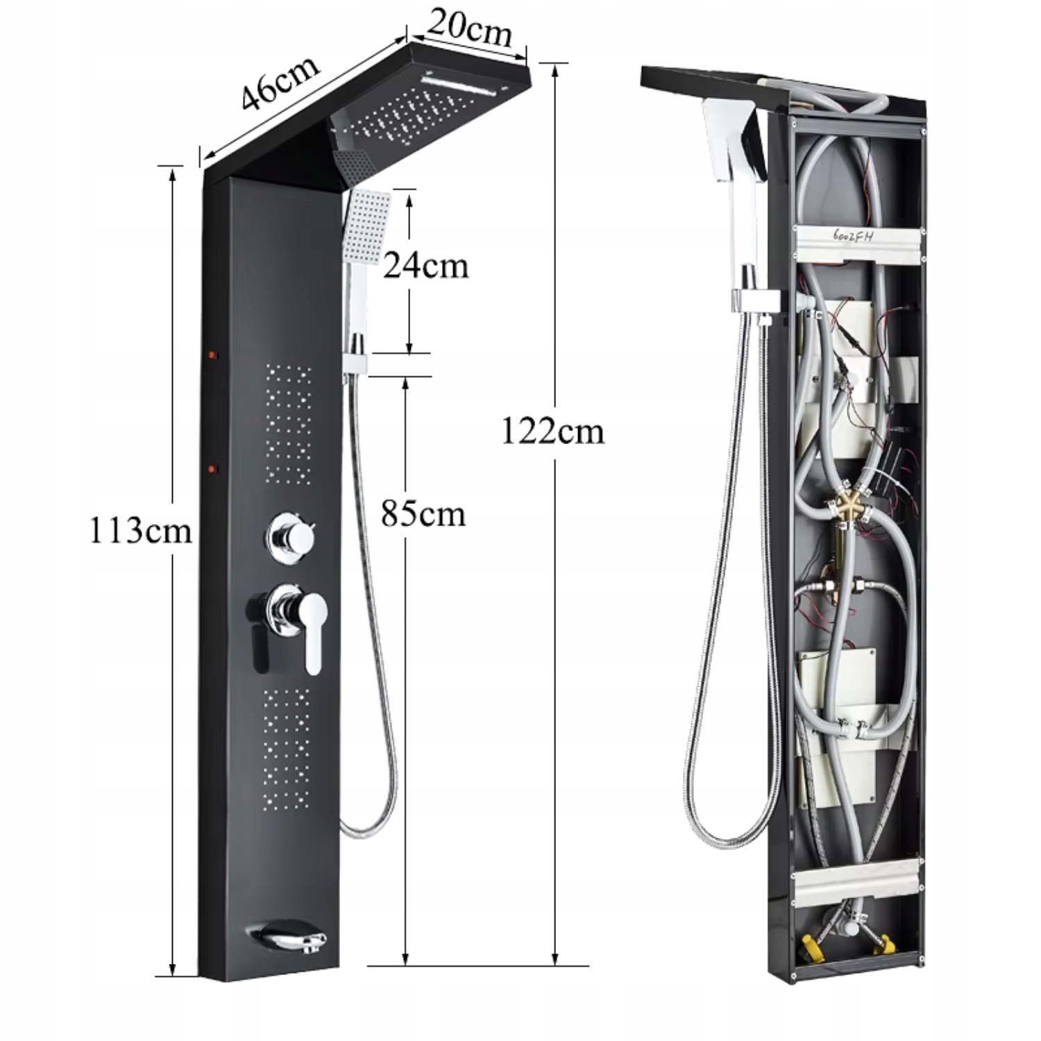 Черная светодиодная душевая панель с гидромассажем и дождевым душем