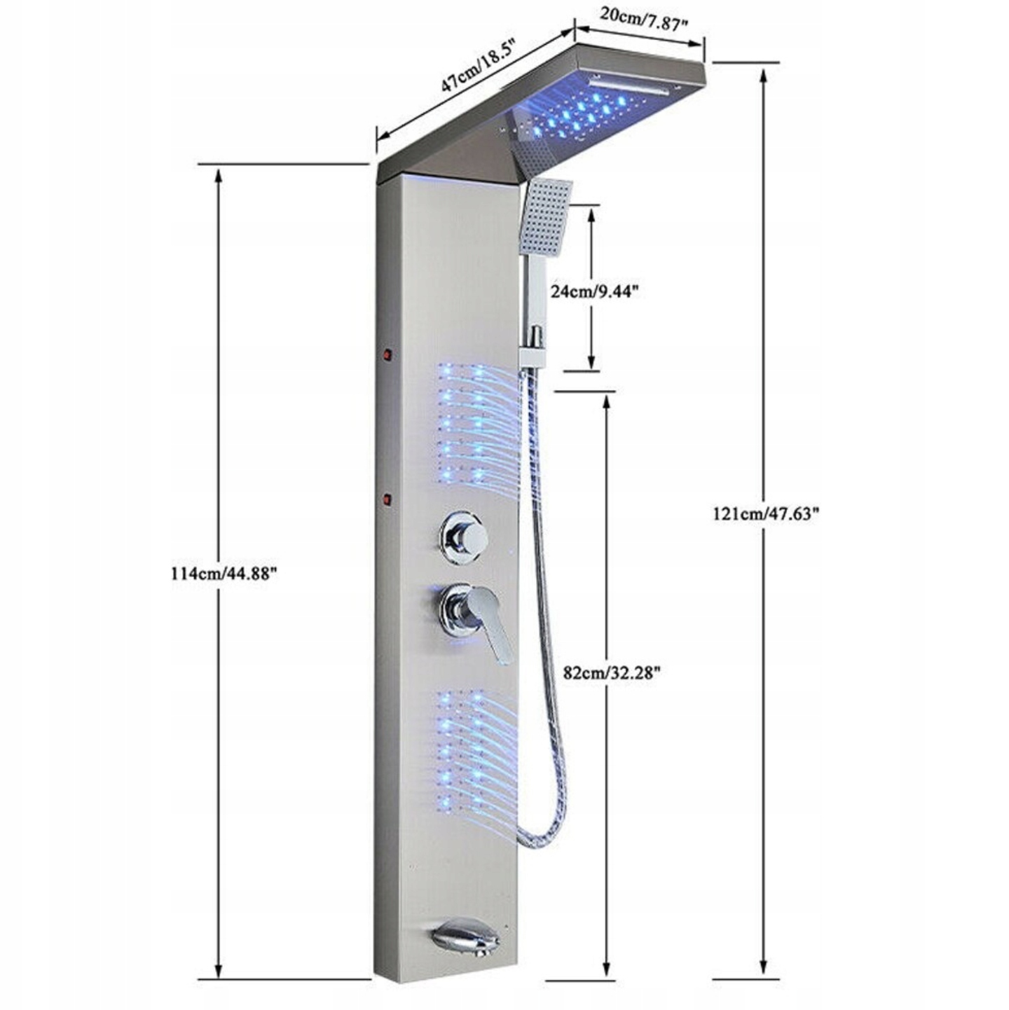 Душевая панель со светодиодной подсветкой с тропическим душем, гидромассажем и многофункциональным ручным душем
