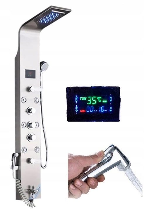 Это эксклюзивная, стильная, современная душевая панель с гидромассажем, водопадом, тропическим душем и светодиодами.